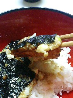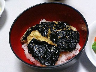 豆腐に海苔が乗せてある奇妙な丼でした!