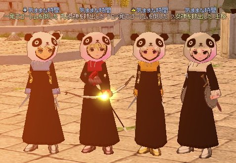 最近の流行は、4人揃ったらとりあえず、まずパンダに着替えることです。